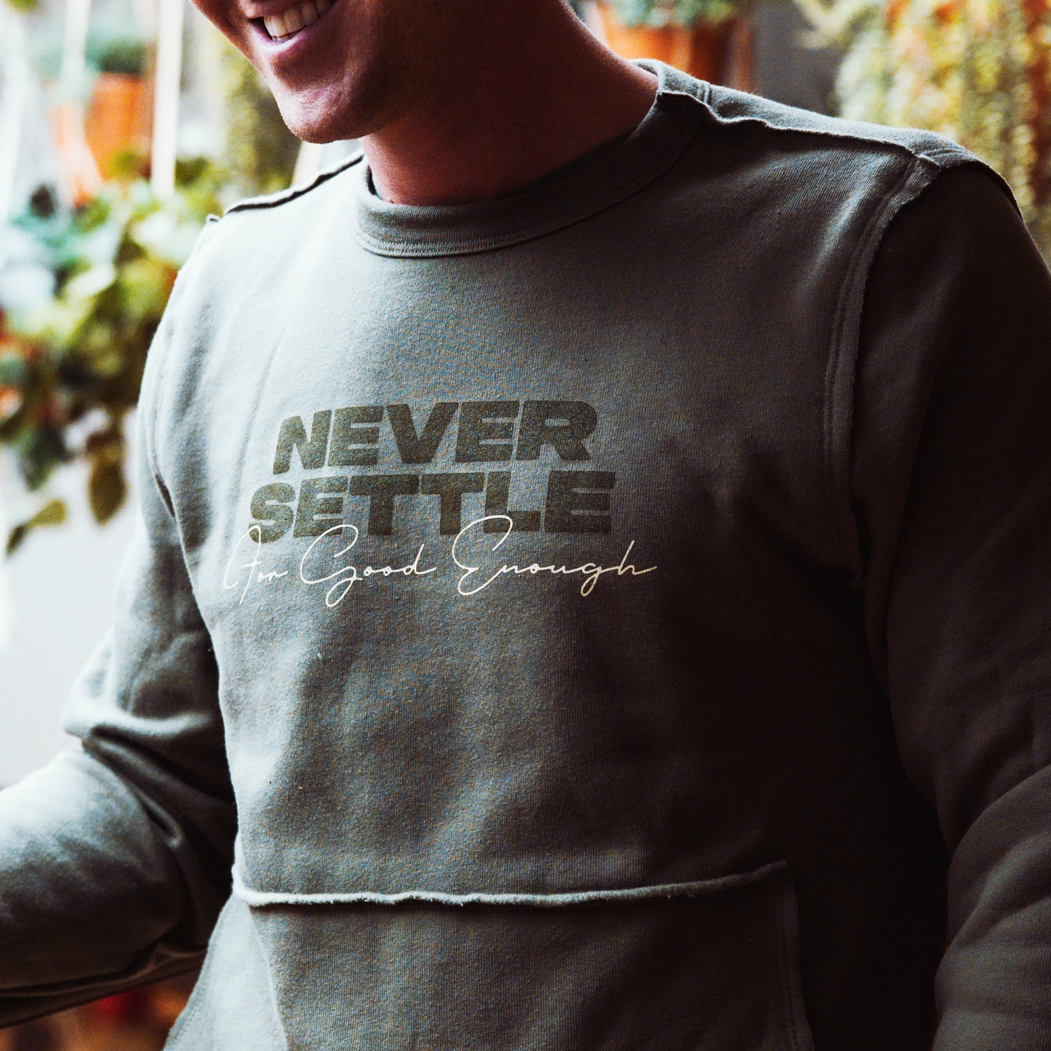 Are you feeling bold? Are you making moves? Well do we have the sweatshirt for you! This type based design features our tried & true motto screen printed front & center along with a small brand mark printed along the bottom left hem.