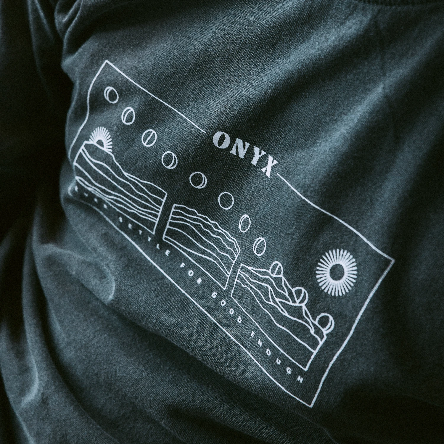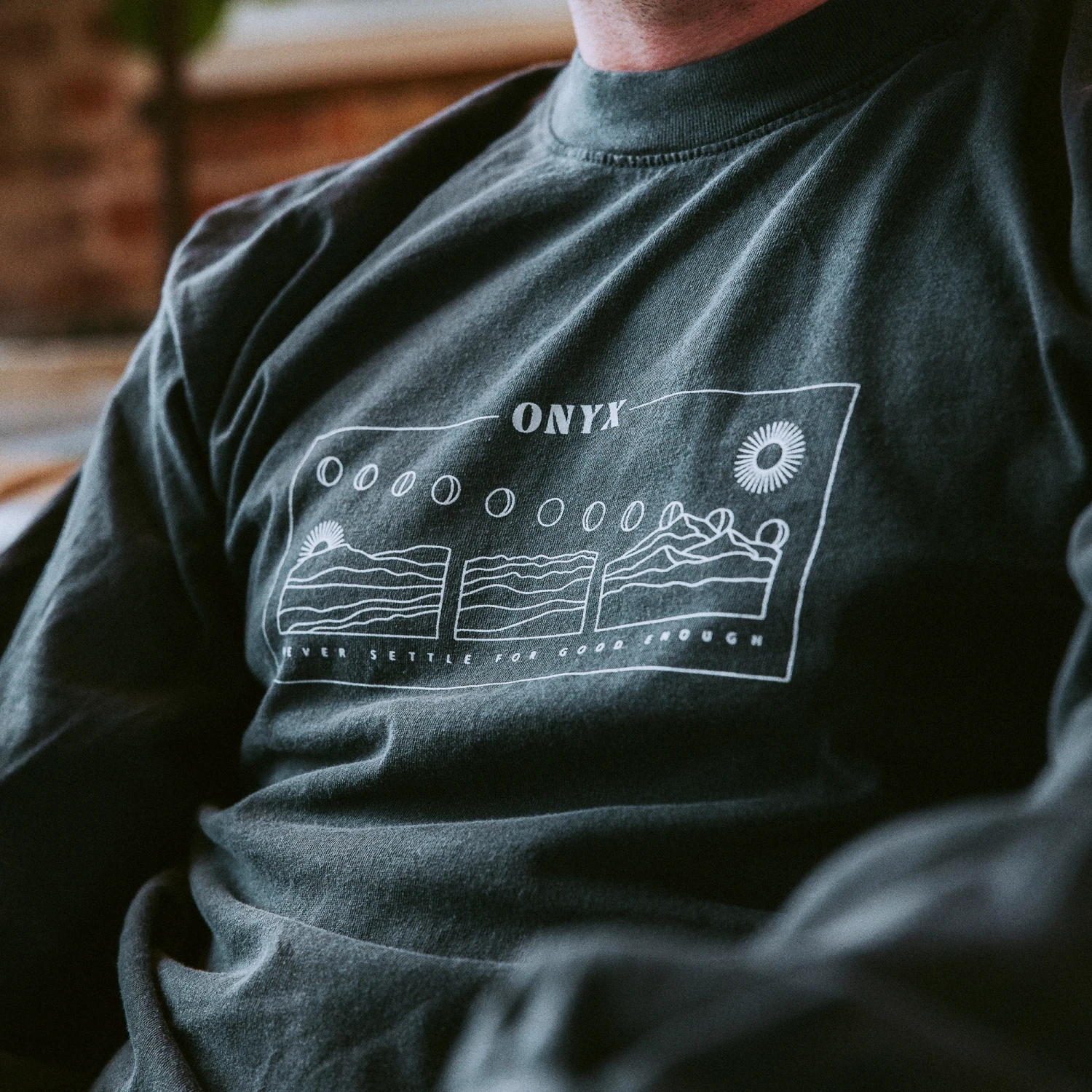 Screen printed on premium Los Angeles Apparel 1807GD long sleeve pocket tees.