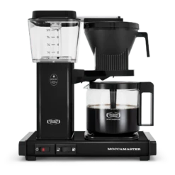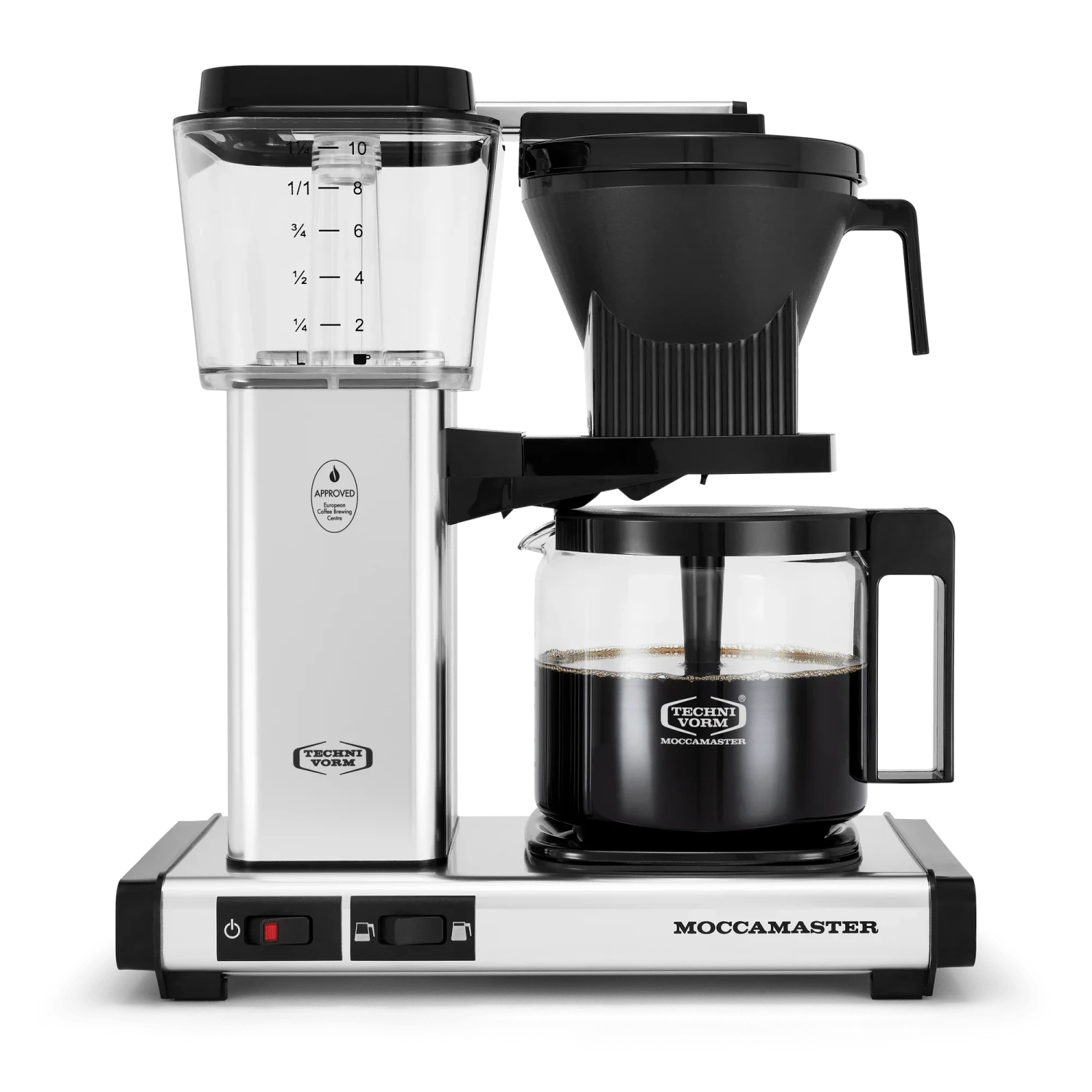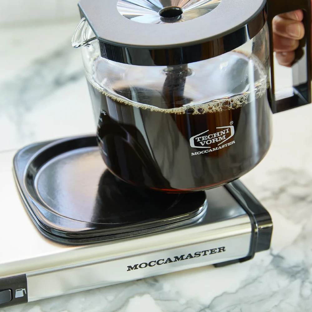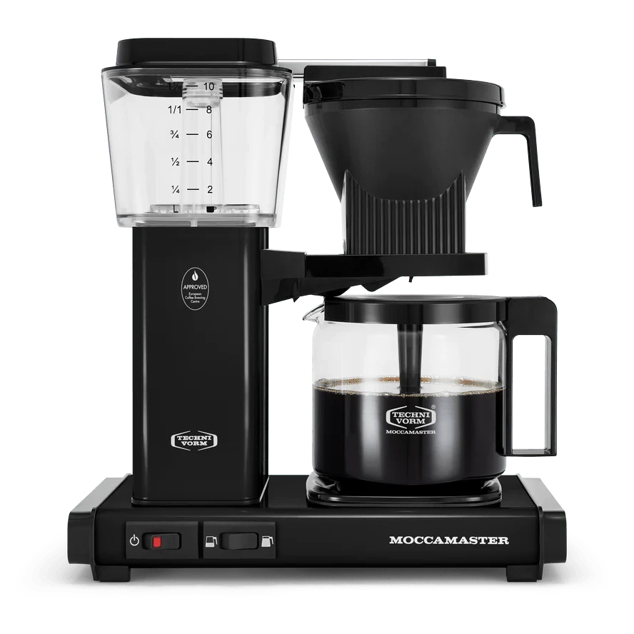 The latest model of the Moccamaster family is the Moccamaster KBGV. This new model is based on the iconic Moccamaster KBG. The biggest difference between the regular KBG and the KBGV is the switch on the front. With the help of this new selector switch it is possible to easily optimize the brewing time for a full or half jug. The throughput speed and extraction time will be extended when the half jug mode is chosen. The result is an aromatic cup of coffee with a full taste, regardless of the smaller quantity. If the full jug mode is selected, the flow speed is equal to the regular KBG model. The Moccamaster KBGV is ECBC certified for both 10 and 6 cups of coffee, making it the best coffee machine for both small and large quantities.