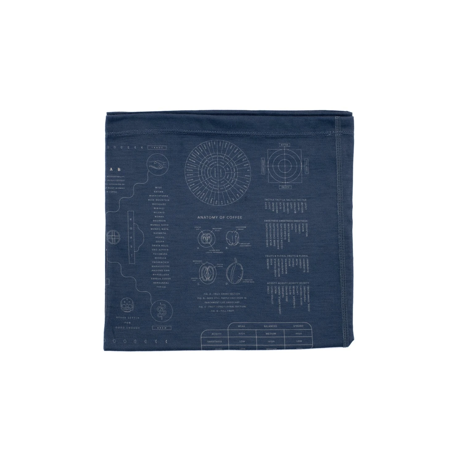 This blue (Midnight) breathable mesh ascot works well as a protective face mask or as a fashion accessory. Featuring the “Conspectus” artwork showcasing the science of coffee printed in a non repeating 360′ print. Being safe is in and now that we have ascots in every color you can socially distance in style.